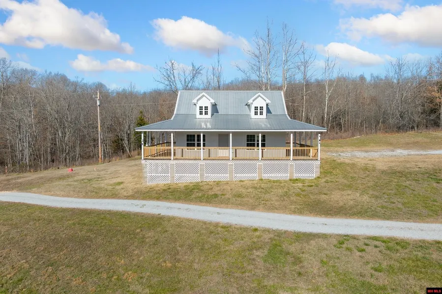 This unique 4 BR, 1 BA home (with soaker tub) of comfortable space with luxury vinyl plank flooring throughout. Plans are available to add a 2nd bathroom upstairs. Adjacent to the main home is a 38' x 64' large workshop/motor home bldg with three 10 x 12 foot doors and one 12 x 14 ft door, housing a fully outfitted tiny home with 1 BR, 1.5 BA, perfect for guests or as rental potential. Powering this unique compound are 2 leased propane tanks-one 200 gal, the other 330 gal. A standout feature is a massive 52 ft diameter footprint excavated for a future round house, envisioned to rise 24 ft high. The $23,000 pre-cut foam pieces will convey--making this the 3rd house on the property. The house features a spring-fed water system with a purification system, ensuring fresh clean water flows year-round, two ponds, the larger, approx. 1.25 ac m/l, is stocked with bass, crappie, minnows, blue gil...