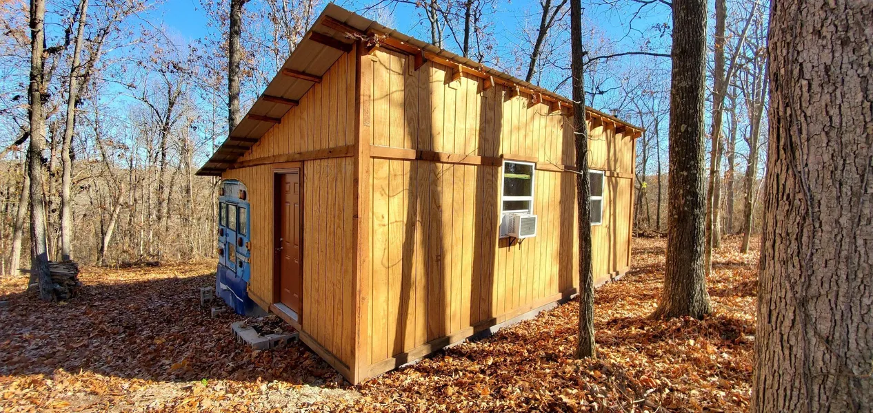 PRICE REDUCED!! The Holy Hills Retreat is one of the most unique tracts you’ll ever see. This quaint wooded parcel is loaded with stunning white oak timber that towers over the gently rolling slopes. Setting amongst these gorgeous trees is the coolest off-grid cabin you’ll see. Stunning in construction and quality no doubt but the exceptional distinct nature of this cabin is like nothing you’ve ever seen. Built out of the frame of an old bus, this 512 sq ft masterpiece leaves nothing to be desired. Finished from top to bottom in knotty pine walls and ceilings, fully insulated, stunning walnut slab counter tops, 2 air conditioners, custom built bunk beds, ceiling fans, fully wired, wood burning stove, block foundation and comes complete with a 7,500kw generator. The metal roof ensures years of low maintenance care and the nostalgia this place has is rivaled by none! This jewel is completely off-grid and ready for you to come set up your dream hunting camp or hideout! The north line is bordered by the famous Buffalo National River land, giving access to thousands of incredible hunting land. The possibilities are endless with opportunities to hike and camp all over some of the prettiest ground God has given us. The majestic Buffalo River is less than less than ½ mile to the west. Just imagine being a hop, skip and jump away from rafting, canoeing, or kayaking this incredible river. The game is rich and dense with a heavy population of black bear and whitetail deer. Several excellent bucks have been seen and some good deer harvested. The neighboring landowners have proven to be courteous and quiet. As you are out here on your private little oasis, you just don’t see or hear a thing; peace and tranquility at it’s best. This tract proves to be an ideal get-away, bug out, hunting camp or just a statement piece with the coolest cabin in the neighborhood! The Holy Hills Retreat is like nothing you’ve seen, and it won’t last long. Call today for your private showing.