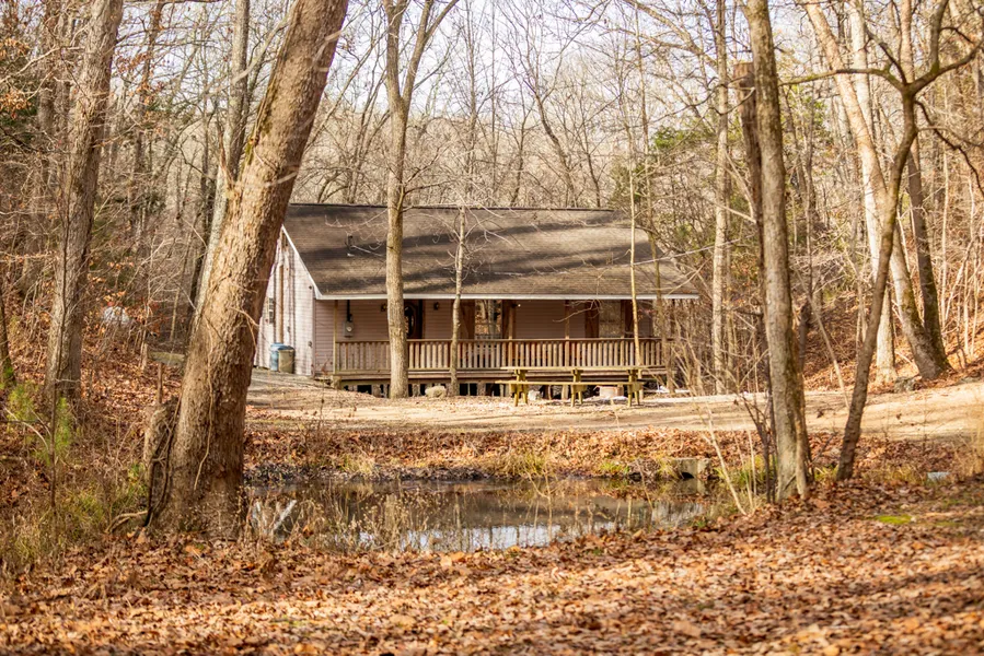 Located at the end of Buck Saw Drive is the extremely unique home or cabin, that is unlike any other you’ve likely ever seen. The dwelling is 1,032 square feet with one full bath and a jacuzzi tub in the main bedroom. All furnishing seen in photos will convey making the place ready to use immediately. The highlight is without a doubt the creek that literally runs out of the spring-fed pool in the front yard, into a creek that flows underneath the cabin! Enjoy sitting on the front or back porch, each of which gives views of the creek below. Just off the back porch the creek runs off a 25-foot waterfall and dumps into a massive draw. For those who love exploring, there is a HUGE cave just behind the house near the bottom of the waterfall. This cave has multiple entrance points, a small pond at the bottom, and several unexplored tunnels just waiting for the right person to come and see what else lies beneath!