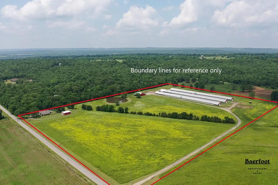 Wow! What a sweet operation. Tyson contract with three 500 foot hen houses built in 2014 grosses almost $300,000 annually. Lenders will require a down payment of more than 15%. Barns meet current specifications for hen farms in the complex and should not need any updates. Cool cells are less than two years old. Central HVAC for the work room area is less than two years old. Brick home has 3 bedrooms plus office space. It was built in 2014 when the chicken houses were built. 30x40 workshop has heat and plumbing stubs and septic. 50x75 barn keeps your equipment out of the weather. Open pasture is really productive with native grasses.**Seller will reduce price to $2M if a Buyer wants only the chicken houses on approx. 12 acres. You've got to see this one!