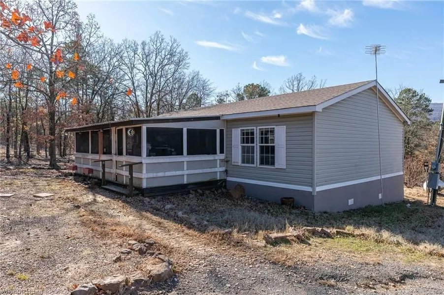 3 bedroom, 2 bath mobile home located on 5 fenced acres in Hackett! This property features many updates including new paint and flooring. Outside features a screened in porch, RV carport and a 12x20 shop with electric!!