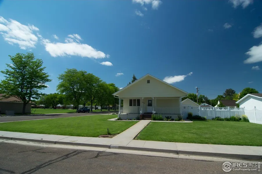 A corner house on the west side of Julesburg, this Traditional front-gable style home was built in 1926 and given a later addition. Two bedrooms on the main floor with one bath, open living-dining room combo, kitchen with appliances included, and a main floor laundry with half bath. The addition includes a 2-car attached garage, bonus room and storage space. The finished basement has 1 non-conforming bedroom, a bedroom or office room, and a carpeted family room. Outdoor features include a detached garage w/alley entry, covered patio, vinyl fenced backyard, chain-link fenced garden, and auto sprinkler system.