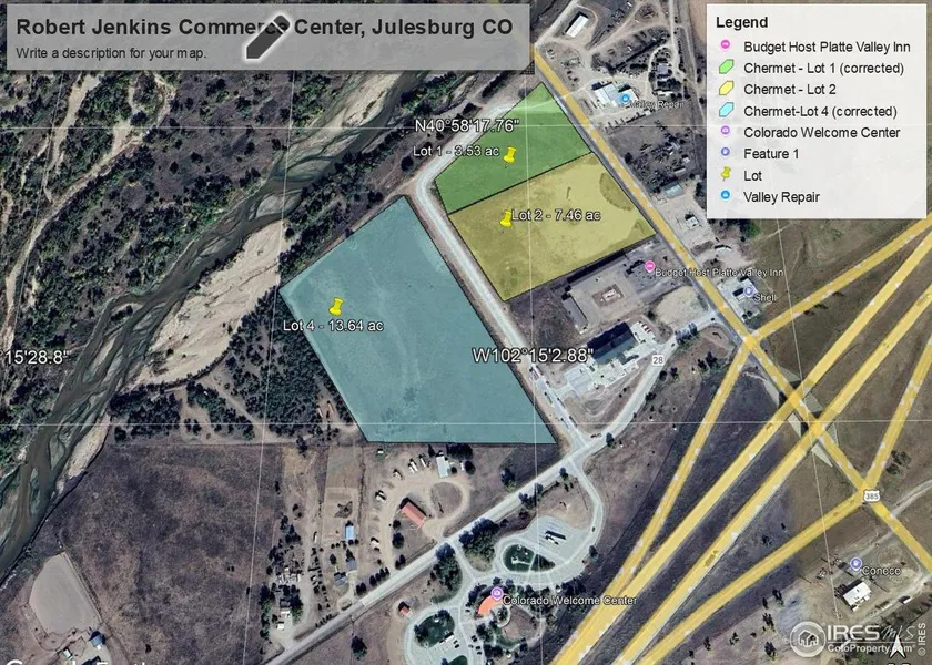 2 Commercial lots in one offering. Lot 1 - 3.53 acres, Lot 2 - Under Contract, and Lot 4 - 13.64 acres. (Lot 3 previously sold to Cobblestone Hotel. (Hotel now open for business!)) Lots 1 & 2 have highway frontage on US Highway 385; Lots 1 & 4 have river views along the South Platte River to the north. Lots also available separately at the following prices: Lot 1, $1.50 per square foot - $230,650; Lot 2, $1.50 per square foot - Under Contract; Lot 4, $1.00 per square foot - $594,158.