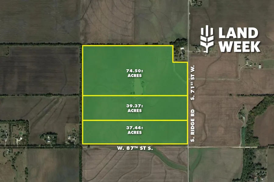 Selling by the acre! This property is being offered high bidder's choice with adjacent land in Clearwater, KS: Parcel 1: 74.50 +/- acres, Parcel 2: 39.37 +/- acres and Parcel 3: 37.44 +/- acres.
