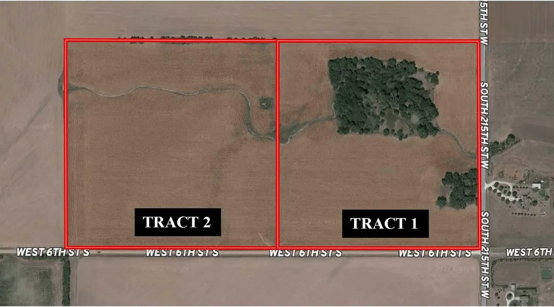 Auction Method: Tracts 1 & 2 will be auctioned separately. Bidding will then be open to all buyers in the options which they choose. Whichever method brings the highest dollar amount, individually or in combination, is how it will be sold.