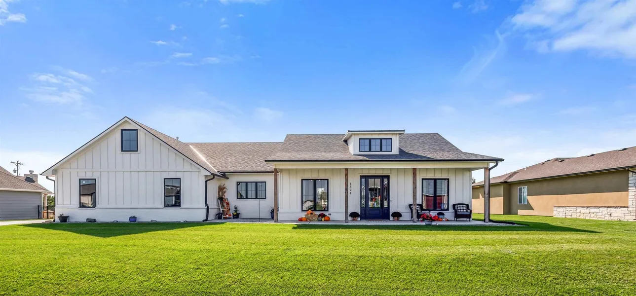WELCOME to this Custom built 3 bed/2.5 bath home with a Large luxury kitchen and oversized walk-in Pantry (13x6) that is sure to WOW you! Located on over a half acre near Goddard in the sought after Elk Ridge Addition, this home features 10ft ceilings throughout, large windows, extra wide doorways, beautiful hardwood flooring and quartz counter tops. The substantial Master bedroom and bath are sure to impress. Beautiful large windows face the backyard allowing for lots of natural light and privacy. The Master bath features an oversized walk-in shower with TWO shower heads and bench. The double vanity hosts a drawer for hot hair tools and also two counter cabinets with outlets located within to charge shavers/toothbrushes etc. Guest Bedrooms have large walk-in closets and the guest bathroom has two vanities back to back with a private toilet shower/bath combo, making it a breeze for multiple people to get ready at the same time. The finished Loft above the garage can be used as an office, playroom, extra TV room, craft room, or even a storage room. The possibilities are endless. Outside you have a brand new lawn that faces a tree row. No backdoor neighbors! Large driveway that can hold up to 9 cars! Making it easy to back out of the side load garage. There is also room for a large shop or extra garage. There is nothing small about this Gorgeous Home and has too many extras to list. Schedule your showing today and be prepared to fall in love with its timeless character!