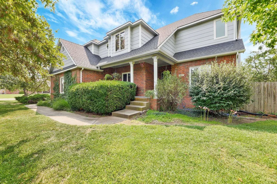 This custom-built, one-owner home offers a thoughtfully designed layout and a wealth of amenities all nestled on a generous 1/2 acre lot located in Sedgwick County in the Andover school district. The main floor showcases an updated kitchen any chef would envy including: - Ample cabinetry and two pantries for storage - A gas range and granite countertops - Elegant tile flooring - A built-in desk all appliances included Adjacent to the kitchen, the informal eating area flows into a hearth room and living room, both warmed by a charming three-sided fireplace. A formal dining room provides an elegant space for special meals and family gatherings. The office is equipped with tasteful oak built-ins and desk, creating a fresh and organized workspace. Completing this level are a half bath and a utility room with a washer and dryer that will remain with the home. The upper floor features flawless oak floors and hosts four well-appointed bedrooms: - Two bedrooms share a full Jack and Jill bath with a third bedroom across the hall and another full bath. - A cozy master suite with coffered ceilings, an en suite bathroom featuring dual sinks, and a beautifully tiled shower - An upper balcony that offers a dramatic overlook into the downstairs living area The spacious basement is designed for relaxation and entertainment, featuring: - A family room with a wet bar and a wood-burning fireplace, complete with an ample supply of wood stored in the backyard - A bedroom which could also serve as a workout space, or craft room, adjacent to a full bathroom - A workshop and additional storage area Step outside to the outdoor oasis with a layered deck and new hot tub, ready for you to unwind while enjoying views of the beautifully landscaped backyard. This outdoor space features: - Over 40 varieties of trees providing shade and privacy - Fruit trees including pear, apple, and plum - A wildflower garden - A vegetable garden - A well, sprinkler system, and garden shed for all your gardening activities The backyard features side access with ample space for RV parking. This home has been meticulously maintained, with significant updates including: - New exterior paint and new roof in 2020 - A new hot water heater in 2023 - A new dishwasher in 2025 This exceptional home combines thoughtful design, modern amenities, and a stunning outdoor environment, making it a must-see property. Don't miss your chance to make this dream home your own!