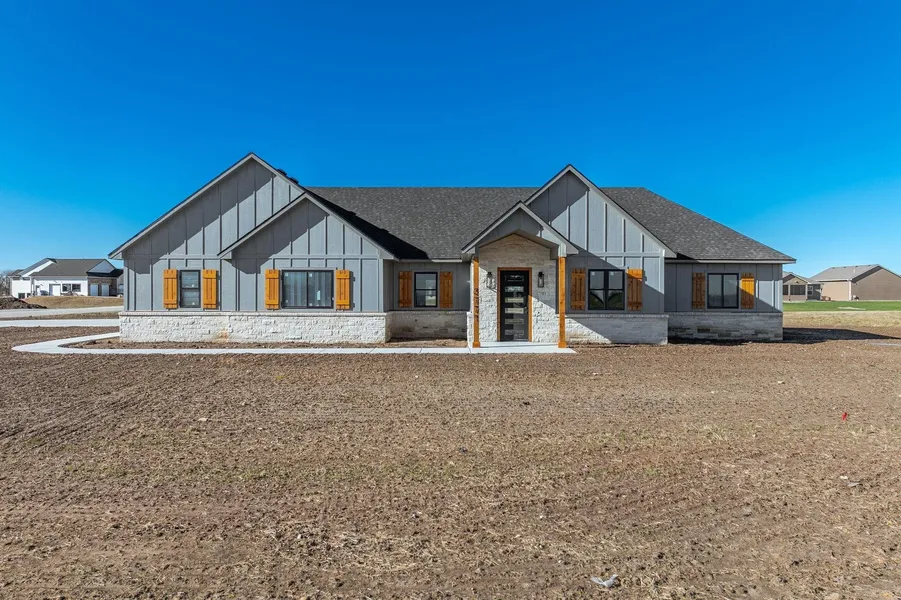 Introducing "The Karsen" by Perry Family Custom Homes- Country Living with Modern Luxury! Experience quiet country living on a spacious one-acre lot in this spectacular 3-bedroom, 2.5-bath, +office 2,765 sq. ft. patio home. Every detail of The Karsen is designed for comfort, style, and function. Step inside to an open-concept living area featuring a beautiful stone fireplace, quartz countertops throughout, and a GE appliance package including a cooktop, double oven, refrigerator, and dishwasher. Relax in your master suite with its own dedicated AC/heating system, tile shower floor, and micro cement walls for a sleek, modern feel. The oversized 4-car finished, insulated, and painted garage includes a concrete safe room and plenty of space for storage or hobbies. The covered back patio is the perfect spot to unwind and enjoy stunning sunsets - and there's still room to add a shop or detached work garage if desired. This is The Karsen - where peaceful living meets premium craftsmanship.