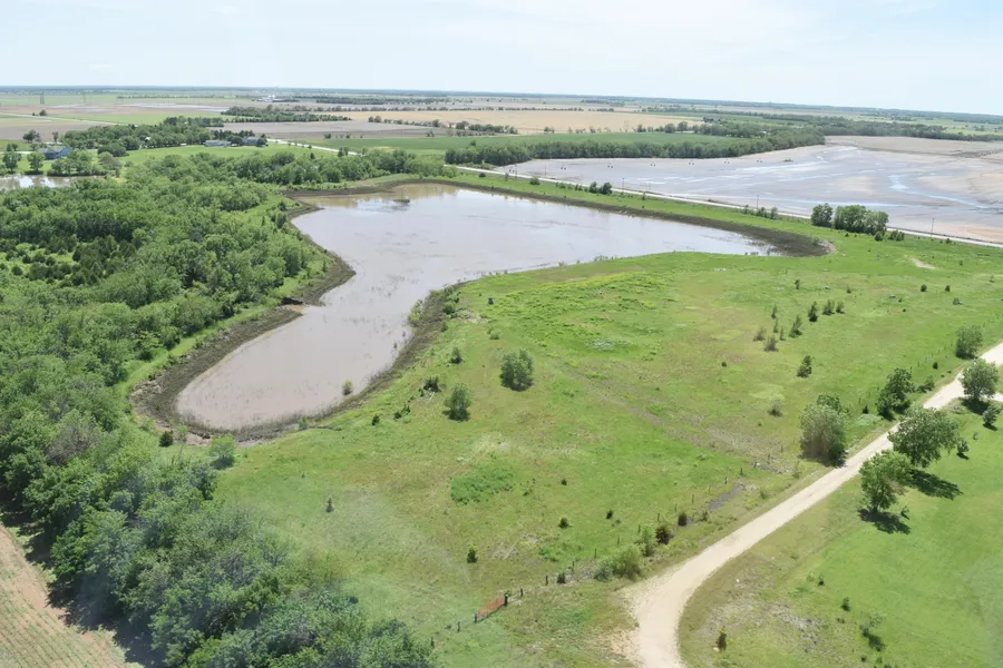 Description: 42 +/- acres with a 9 acre dugout pond and tree-lined creek. There is approximately a 6 acre building site out of the floodplain. The dike has been opened and it could be repaired to hold water. Property would make for a great home site with blacktop frontage off S Ridge Rd.