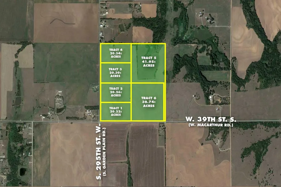 Research Parcel Information(Garden Plain) South on S. Garden Plain Rd. (S 295th St W) to W. MacArther Rd. (W 39th St S.) Property is on the NE corner of the intersection.