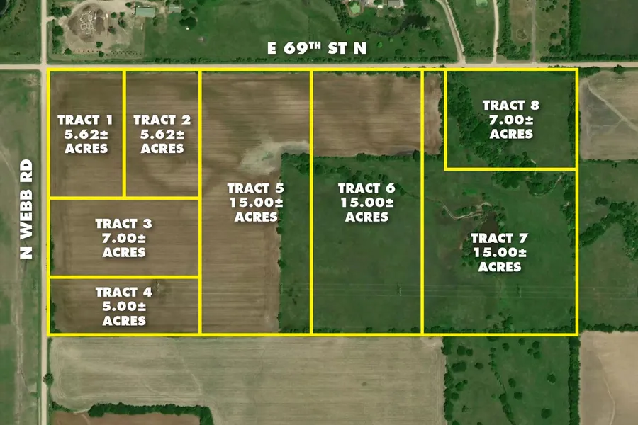 LIVE AUCTION WITH MULTI-TRACT BIDDING! Offering a rare opportunity to purchase acreage in Northeast Wichita; 77+/- acres offered in 8 separate tracts or any combination.