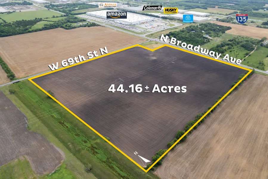 Online Bidding Auction Closes Friday, March 28th at 12:30 PM! Positioned adjacent to Amazon, this 44.16 +/- acre property in Sedgwick County, Kansas, presents a prime opportunity for investment, development, or a spacious homesite. With strong potential for future growth and appreciation, this land is conveniently located just southwest of W 69th St N & N Broadway St within the Valley Center School District (USD 262). Zoned SF-20 Single Family, the property offers a range of possibilities for future use. Featuring blacktop road access, this location provides easy access to Wichita highways and amenities. Possession will be granted at closing. The 2024general taxes are $222.93, with specials at $2.21. The sellers mineral interest will transfer with the real estate. The property is located in a flood zone area. Dont miss this rare chance to invest in a strategically located parcel with si...