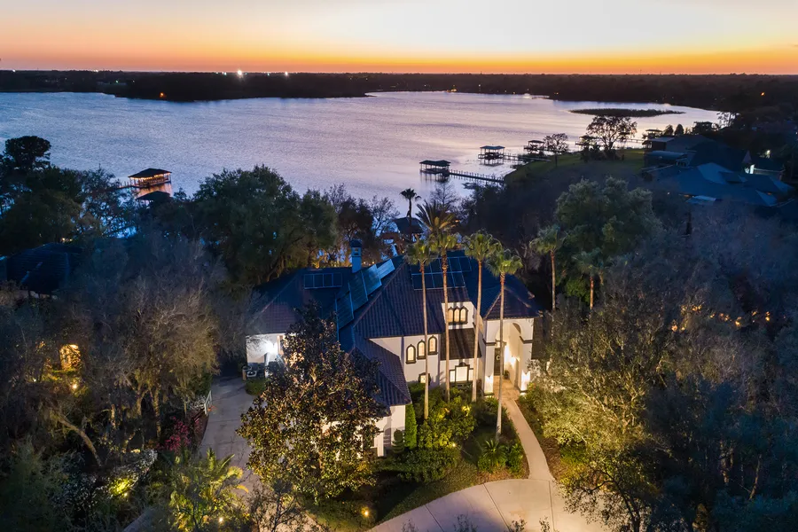 Live. Life. Lakefront. Anything but ordinary, the striking architecture and exquisite design tell a story from the moment you set your eyes on 636 Sylvan Reserve Cove. Situated on the East side of Lake Sylvan and enjoying long westerly views, one simply cannot articulate the extreme beauty of the endless sunsets and serenity living on the lake brings. Understated elegance throughout the 5,463 square feet is distinguished by a medley of material comprising the interior and exterior. The main residence enjoys four resplendent bedrooms of impressive size, three full baths and one half bath. The separate guest suite is also very spacious, boasts dramatic lake views and is complete with a recently renovated full bath. This home is truly the crown jewel of Sylvan Lake Reserve. Upon entering through majestic solid wood doors, you are greeted by a light and airy interior with new floors and a sensational view of the lake through a wall of windows dressed in plantation shutters. The large great room and dining areas are great mingling spaces for family and friends. The kitchen is a chef's delight thanks to its 48-inch gas cooktop, double wall ovens and center island. Sylvan draws all attention from nearly every window, especially the dramatic eat-in space of the kitchen, simply striking. A convenient work area lies behind the kitchen and the second bedroom plus bath are tucked away next to the stairs. After a short ascent up the stairs your decision splits between heading right into the game room or left into the loft. The game room is oversized and perfect for a home theater or almost any entertainment setting. The loft features a common study area for adjoining bedrooms three and four. Both bedrooms are enormously sized and enjoy en-suite baths. Stepping outside into the screened lanai, you will find a wet bar and ample seating area. The pool is perfectly situated to take advantage of the longest lake views of the community. Ready for some fun on the water? The boathouse beckons all. Lake Sylvan is one of western Seminole County's largest ski lakes. Enjoy boating, fishing, and more on its over 190 acres. Evenings are nearly indescribably tranquil thanks to carefully placed landscape lighting and the amazing sunsets illuminating the water beyond. Notable improvements include new tile roof 2021, new paint and flooring, recently replaced HVAC systems, a whole-house fire suppression system and a clean, free, renewable energy solar array. In addition to the amazing lifestyle this home brings, a wealth of outdoor activities is available nearby, including golf and country clubs, walking and hiking trails, and easy access to attractions and the beaches. Seminole County enjoys top-rated schools, and boutique dining and shopping are just moments away as are I-4 and the 429/417 beltways. Experience the finest in lakefront living.