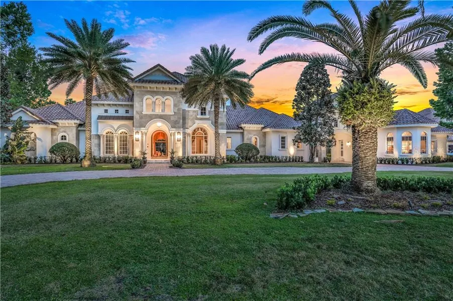 This spectacular one of a kind, single story Dave Brewer built home is situated on over an acre in guard-gated Heathrow Woods. Complete with guest house, four car garage and a resort style pool area, the home was lovingly designed with both entertaining and comfort as a priority, and is cared for by the original owners. Drive up the sweeping circular driveway and you are greeted by tababuia trees, zoiza grass and a beautiful travertine exterior. Double custom front doors encased in wrought iron, greet you as you enter the living and dining area complete with custom fire place and soaring 20 feet ceilings. The office showcases custom built wood paneling, built in storage and desk . The large master suite features a custom built wet bar complete with refrigerated drawers. There are two generous walk in closets (12x14 feet and 7x12 feet), complete with built in cabinetry, plus a separate office/workout room or nursery. A wine cellar complete with chiller sits opposite the large butler pantry. The open kitchen complete with wolf appliances, gas cooktop, oversized refrigerator and separate freezer is a chefs delight. A large pantry storage room is conveniently hidden behind cabinetry. The kitchen and great room offer a spectacular view of the gorgeous pool area - step through one of many French doors to an abundance of outdoor living space. Enjoy cool evenings sat by the outdoor gas fire place, cook at the outdoor kitchen grill and shoot a hole on the putting green! The 20x32 feet game room hosts a full size pool table with wet bar complete with ice machine and refrigerator, ready to serve guests! All bedrooms have en-suite bathrooms with walk in closets. The guest house is adjacent to the main residence and offers kitchenette, large bedroom, bathroom, walk in closet and oversized one car garage. Play basketball on the full - half sized court outside. Over 12,000. square feet of travertine help to complete this home and pool area along with hand scraped cappella wood floors in thebedrooms.The home has an automated home surveillance system with whole house Sonos sound system. Central vac system, Whole house generator. Whole house exterior re painted in March 2021. Plenty of storage.. a separate air conditioned storage room is located in the garage, drop zone area, designated attic storage. Heathrow Community Amenities include 24/7 manned guarded-gates, Sawyer Lake Park w/ large playground including ball fields, basketball courts, soccer field & a clubhouse. Residents can enjoy Country Club living with outstanding golf course, tennis courts & pool facilities. A- rated schools. Enjoy close proximity to I-4, 417, shopping, Colonial Town Park with fabulous restaurants & miles of walk & bike trails! Approx. 45 minutes to the beaches(Daytona & New Smyrna) approx. 45 min. to Disney. This property is under audio/visual surveillance.