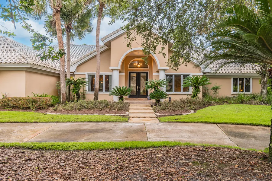 Located in the gated golf community of Alaqua, on an acre homesite, welcome to paradise. Gently sitting in lush landscaping with a circular driveway, this custom home is remarkable. Glass front doors open, and you are greeted with spectacular views. A generous foyer is framed by a double-doored office/bedroom facing a large, formal mirrored dining room. Forward is the stunning formal living room with a fireplace overlooking the fabulous pool, golf fairway and greenbelt beyond. This executive home becomes cozy and comfortable with a wonderful split floor plan and lots of living space. Off the formal living room is a smartly planned kitchen with an island, loads of cabinets and countertop space. The nook sits proudly in a windowed corner overlooking the pool and beyond. The family room with a wet bar is spacious, inviting and offers views of the pool, summer kitchen, rolling fairway and green space. The owners' suite is warm and romantic, with a sitting area with a fireplace and views. Off the family room are two bedrooms sharing a dual bath, and the fourth bedroom overlooks the fairway and sits across from the pool bath. The big three-car garage has lots of space for autos, boats and toys.