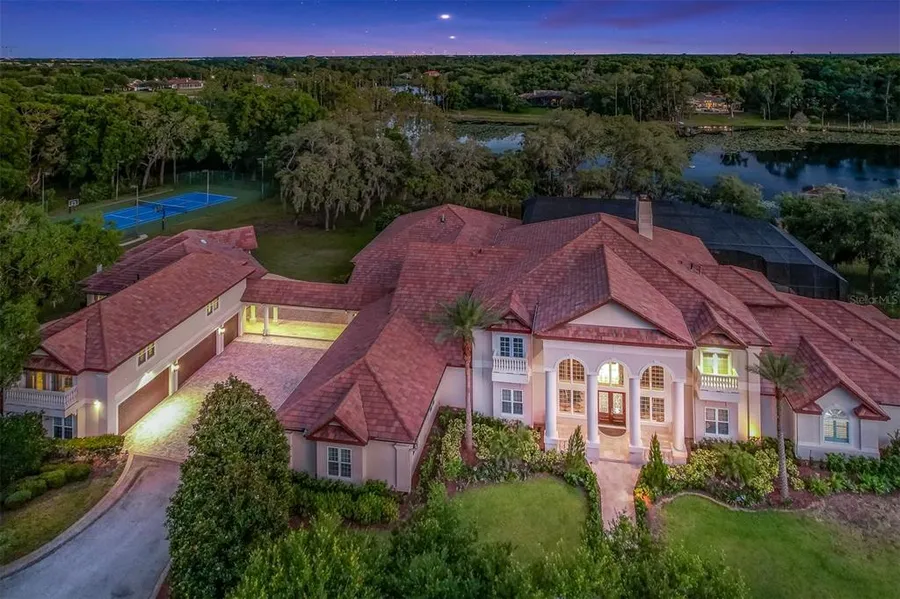 Located in Lake Mary within the prime Markham Woods corridor, this spectacular 5-acre luxury waterfront estate has so much to offer! The current owners have painstakingly updated many areas including an exquisite, brand new 50 ft resort style pool and screen. Situated behind new private electric gates, the main residence is 12,821 square feet with 8 bedrooms, 6 bathrooms and 2 half baths. It offers a beautiful gourmet kitchen with separate fully appointed butler kitchen, game room, new movie theater and office. The 10-car garage and air-conditioned gym has two 2 additional half baths. This space could be used to park an RV or even host parties! The guest house is 3000 square feet and offers a luxurious master bedroom and bathroom, gourmet kitchen, family room with fireplace, dining room and powder bath. Upstairs is a self-contained apartment with a further 2 bedrooms, 2 bathrooms and kitchen/family room and separate entrance. Outdoor amenities include private newly re-finished tennis/basketball court, outdoor grill and patio off kitchen and whole house generator. This property maybe under visual and audio surveillance.