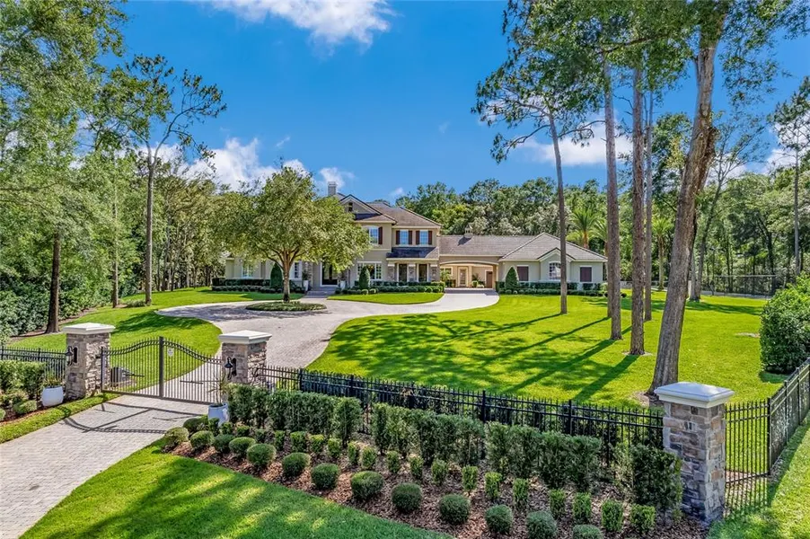 ** Step inside and tour this home via the video tour link. This link is also available on Zillow under facts and features, "other features" of this property.** Welcome to this luxurious estate home, nestled in the prestigious guard gated Sweetwater Club in Longwood, Florida. Spacious lots and winding streets lined with majestic oak trees offer beauty and privacy to the residents. Nestled on a cul-de-sac, the home's private entry gate opens to a circular driveway, porte-cochere connecting to the paver motor court with the 6-car split garage. 6 bedrooms, 6 bathrooms, and 2 half baths span over 7,405 square feet gracefully set on the fully fenced 2.76-acre lot. The grand foyer entry opens to soaring ceilings, gleaming marble floors, and grand staircase. An elegant formal living room just off the entryway provides a tranquil seating area. The formal dining room is perfect for hosting lavish dinner parties. The spacious gourmet chef's kitchen and adjacent casual dining area feature top of the line stainless steel Thermador appliances with a heat shift induction cooktop, custom cabinetry, and large center island. A true sanctuary, the first-floor primary suite includes a sitting area, walk-in closets, and spa-like bathroom complete with a soaking tub and walk-in shower. Additionally located on the first floor is a bedroom suite opening out to the pool area. The remaining 4 full-bedroom suites are located on the second floor along with a bonus room, and 2 flex space utility/storage rooms. Just a few of the standout features in the home are custom crown moldings, coffered ceilings, and built-ins that will impress the most discerning buyers. But the luxury doesn't stop inside the home. Step outside from multiple rooms into your private oasis complete with a resort-style heated pool and spa with Tennessee rock waterfalls, your own stadium-lighted tennis court, basketball court, putting green and butterfly garden. With plenty of space for seating and lounging, the expansive patio offers the perfect setting for al fresco dining and entertaining. The grounds are thoughtfully designed with lighting and surround sound, providing the perfect atmosphere for any occasion. Every detail about this home has been carefully thought out down to the two 3 car garages. To care for luxury cars one garage is climate controlled while both are finished with epoxy granite chip floors and insulated carriage doors. Sweetwater Club has access to Lake Brantley for boating, fishing, and skiing. Nearby Wekiva State Park, is popular for canoeing in the Springs. This is truly an exceptional opportunity to own a one-of-a-kind estate in one of Longwood's most sought after neighborhoods.