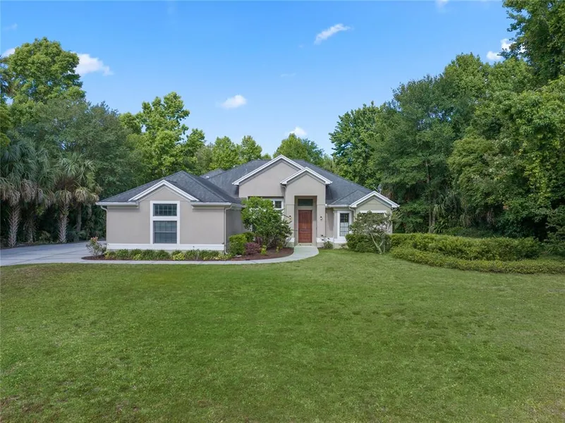 This beautiful home is a quiet gem where you have your own private paradise close to everything! Drive down a beautiful tree lined street that makes you feel like you are out in the country; but the 417, the 429, Sanford Airport and all the shops and restaurants in Lake Mary are minutes away! As you drive up to the home on a dead-end street, you will see the beautiful acre plus lot and a gorgeous entranceway. Enter into the large foyer and step into the Living Room with French Doors taking you to the outside, and the Dining Room, which is light and bright with views of the oversized front yard. You will love the Kitchen and Family Room combination with separate Breakfast Room, the place to enjoy your morning coffee looking out the bay windows to the peaceful back yard. Cooking will be a joy in this spacious Kitchen with tall cabinetry, Corian tops and stainless-steel appliances. There is also a separate area for display and storage. You can visit with your guests while cooking as they mingle in the oversized Family Room with lots of windows and sliders going out to the covered Lanai. The Master Suite is very spacious with decorative high ceilings, double walk-in closets and a lovely Master Bath which has a garden tub, huge walk-in shower and two separate vanities with double sinks. The home is a split/split plan with a bedroom and bath tucked away in the rear of the home, perfect for guests or a study. Since laundry must be done, you will be delighted with the oversized Laundry Room with lots of cabinets and a large sink. You will enjoy total serenity in the backyard which is surrounded by greenery for privacy. The lot actually goes further back than the tree line that you can see in the photos. This will be your retreat area for peace and quiet. Plenty of room for a pool to be added or a large firepit with an outside bar. There are two sheds also in the back. One large one that has electricity and AC: the place for an office, man cave or teenage area. The smaller shed is great for lawn equipment and tools, although you do have a pristine 3 car garage as well!! Perfect spot to live if you need to travel as you are close to the Sanford Airport or get to work by taking the 417 and 429. Nights out will be spent at one of the many fine dining restaurants in Lake Mary. Freshly painted outside and newer AC. If you like custom built homes, built by a Custom Home Builder and not the cookie cutter community, this one is for you! Large lot, gorgeous floor plan, no HOA! What is there not to love!