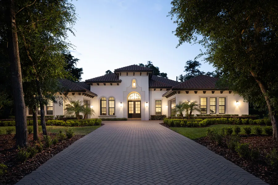 Impeccable luxury estate by renowned master homebuilder, Arthur Rutenberg. Residing on over 1.4 private acres and tucked away within the gated community of Carisbrooke, in Lake Mary's sought-after Markham Woods Corridor, this home will not disappoint. Newly built in 2021, this home features many energy-efficient features and smart technologies and boasts three resplendent bedrooms, three baths, an office, and a bonus room. Exceedingly well-cared for, it is truly better than new. Set behind meandering water oak trees and down a long brick paver driveway, the allure of perfection begins with manicured landscaping and crescendos with an incredibly clean and impressive front façade, boasting a fountain view as guests arrive. Once inside, the open floor plan perfectly aligns the main living spaces while the delicate use of stone and wood punctuates the quality of craftsmanship only a custom homebuilder can offer. Walls of sliding glass doors and tall windows bring in natural light while Low-E insulated glass keeps the heat out. The chef's kitchen boasts an enormous island, top-tier built-in appliances including induction cooking, grand stone counters, plenty of cabinetry and a vast walk-in pantry complete with full-size refrigeration and ample shelving. The dining area and great room are uniquely positioned within the main space to provide both inclusion and separation in this main living space. A few steps away is the game room featuring more tall windows and sliding glass. Get some needed work done in the office, which may also easily be a fourth bedroom thanks to its walk-in closet. The primary bedroom also enjoys sliding glass doors to the lanai with a perfect view of the fireplace. Dual walk-in closets and a luxurious bath with separate vanities and an oversized walk-in shower complete the primary suite. An ideal split-bedroom floor plan, bedrooms two and three are found on the opposite side of the home, each with walk-in closets and private access to each of the two remaining baths. The oversized laundry is conveniently located near the garage entrance and enjoys lots of cabinetry, counter space, and a built-in sink. The screened lanai boasts an inlaid wood ceiling and features brick paver flooring and pocket sliding doors that span the entire rear of the home, a gas fireplace with a TV on the south side, and an area already prepped for the perfect summer kitchen on the north side. The enormous backyard is within view from all angles and the home is plumbed for a future swimming pool and a future whole-house generator. Additional upgrades include a whole-house water treatment system, 5.1ch prewire in the great room, surround system in the bonus room, CAT5e at every TV location, low-voltage prewire for future automatic window shades in the multiple rooms, structured audio throughout, and a media/storage room to manage all connectivity. In addition to the amazing lifestyle this home brings, a wealth of outdoor activities is available nearby, including golf and country clubs, walking and hiking trails, and easy access to attractions and beaches. Seminole County enjoys top-rated schools, and boutique dining and shopping are just moments away as well as Interstate 4 and the 429/417 beltways.