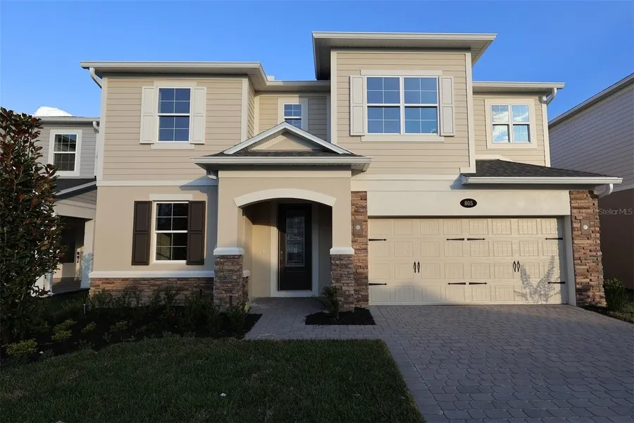 Under Construction. This new construction home for sale, located at 805 River Stone Trail in Sanford, offers 4 bedrooms–including a first-floor guest bedroom–3 full bathrooms, a 12' x 10' lanai, a 2-car garage, and more! The home's design emphasizes functionality and comfort throughout. The open-concept living space creates an inviting atmosphere where the kitchen, dining, and living areas flow together naturally. Located upstairs off the loft, your owner's bedroom provides a private retreat, while the additional bedrooms offer flexibility for family, guests, or home office needs. Located in a desirable Sanford neighborhood, this home combines the benefits of new construction with a well-established community setting. The neighborhood provides easy access to local parks and recreational opportunities, making it ideal for families and outdoor enthusiasts. This new construction home repres...