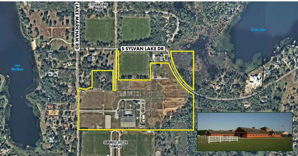 Located at the southeast quadrant of Lake Markham Road and Sylvan Lake Drive adjacent the exclusive Heathrow community in Seminole County, FL. This parcel is about 2 miles west of the I-4/SR 417/SR 429 interchange connecting Sanford to Daytona to the northeast, Mount Dora/Lake County to the west and Orlando/Orange County markets to the south. The neighborhood includes an established rural residential area with large lots including private lakes, walking trails, parks, Rock Springs Run Wildlife Management Area and the Wekiva River.