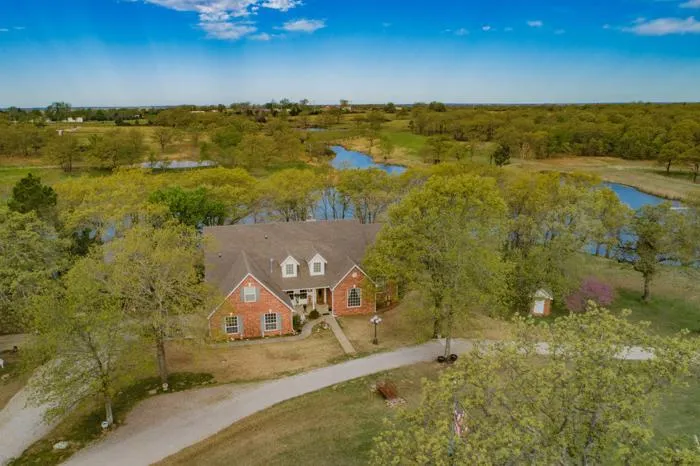 The main house is 2,836 square foot with an attached 625 square foot garage, and asphalt road frontage. It is a two-story, brick constructed home with 4 bedrooms and 3 baths. The home is loaded with storage space, beautiful beams, and a recessed ceiling in the great room, a rock fireplace, a unique sprinkler system, as well as a safe room, just to name a few of the extras that come with this one of a kind listing. The garage is finished out, including running water and a sink. The view overlooking the 9 acre lake from the house is breathtaking to say the least, and can be seen from the living room, kitchen, master bedroom, ...