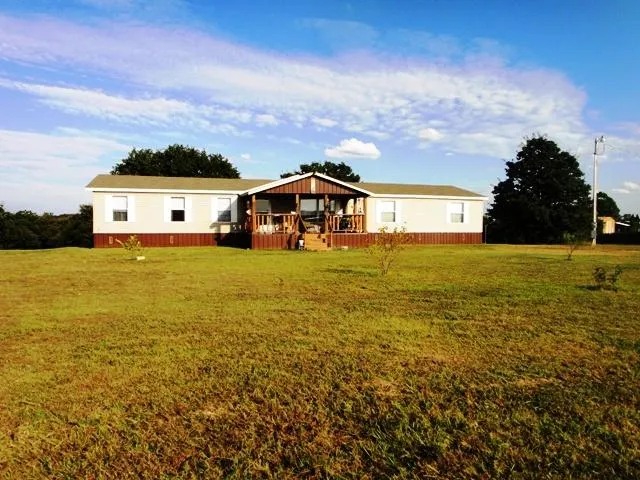 2013 Beautiful (Weston) mobile home on 20 acres m/l. Paved road within a mile of Sportsman Lake. The home has an open floor plan, 2 living areas, one w/fireplace. The master suite is huge with a lovely master bath. 3 additional bedrooms and a full bath on the opposite side of the house. Covered front porch and a large wood deck at the back. There is an old brick home that needs work but has had a new metal roof and plumbing recently. New septic, new storm cellar, land is fenced, out buildings, 2 ponds, fruit trees and all the land is accessible. Mostly clear with the perfect amount of trees.