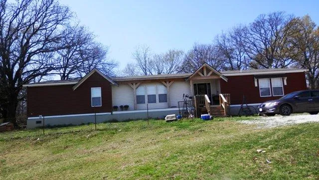 2 houses-Beautiful 2015 Southern Energy Manufactured Home with 3 bed, 2 bath approx 2432 sq ft. This home has all of the extras! Nice entry way overlooks large living area with wood accent wall, open floor plan, dining area with built-in bench and storage, kitchen has large island w/built-in microwave and storage, tons of cabinets and counter space, farm sink, very cool vent hood, beautiful flooring throughout. large master bed and bath with large walk-in closet, double vanities and make-up area, large walk-in shower with 2 shower heads and large whirlpool bath with electric fireplace. 2nd bedroom has nice size closet and built-ins. Laundry area has built-in "doggy shower/bath" and linen storage and water softener system. Home features lovely covered back deck with beautiful wooded views. Bonus House! 2 bed, 1 bath, fireplace, dishwasher, stove, space heater and window unit approx 1152 sq ft, 3-4 year old roof and septic. Property features 2-car detached garage, mostly fenced, storage building, 2 barns, 500 gallon propane tank, pear, apple and Pecan trees, nice size storm shelter, pond and 2 rural water hookup's on East 10 acres, beautiful bottom land. There is a lot to this property!