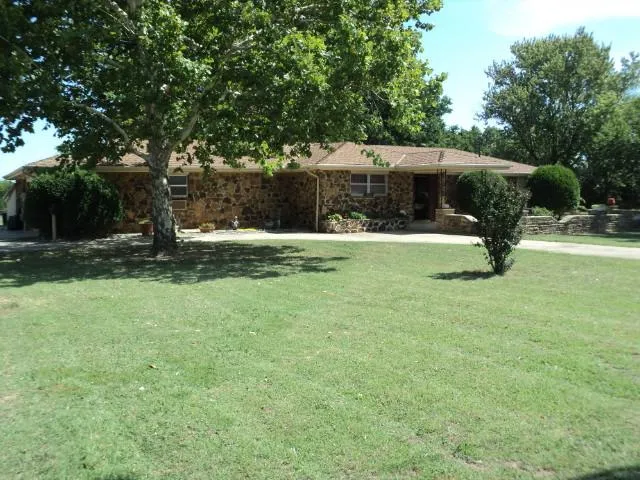 Custom one owner home. Large master bedroom with 3 closets, 2 living areas with built-ins and fireplace, 2 dining areas, 2 built-in china hutches, bay windows with storage, pantry, tons of closets and storage throughout. Lovely kitchen with custom lighting, 2 ovens (1 gas and 1 electric), dishwasher, built-in microwave, lots of cabinets, 2 full baths with linen storage, CH & A approx. 6 years old, 4 hot water tanks, one under kitchen sink & both bathroom sinks for instant hot water. Lovely carpet and tile. Oversized 1-car attached garage with window unit, cable hook-ups, built-in storage and storm shelter. Detached 2-car garage/shop with 1 bed, full bath, window unit and central heat; great for extended company. Lovely yard with lots of huge shade trees, mature landscaping, flower beds, rock wall, decorative entrance,front and back patios, 4 frostfree faucets, basketball goal, yard has been well maintained and is sprayed yearly. Storage shed with work shop and outbuildings all located on 2.41 acres m/l on the outskirts of town.