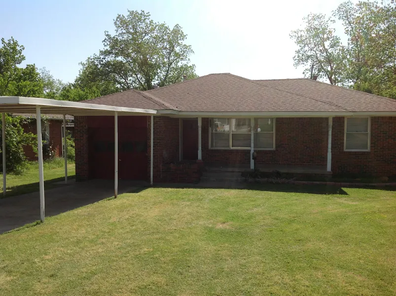Nice brick home located near the park. Two bed, 1 bath home with one car garage has been freshly painted. Property includes washer & dryer, refrigerator, and gas stove. Nice fenced in backyard with several bradford pear trees and a large storage building.