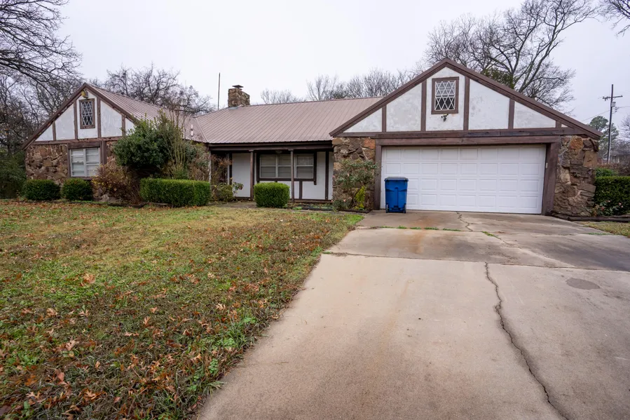 Looking for a little elbow room in town? Don't miss this opportunity! This property features over an acre in city limits which is rare for the area! Nearly 1800 sqft 3BR/2BA home with eat in kitchen, formal dining (or office space) large living area and oversized rooms. Kitchen has ample counter and cabinet space. 2 car attached garage with additional storage, metal roof and rook veneer. With a few updates here and there, you could have a wonderful home at a great price!