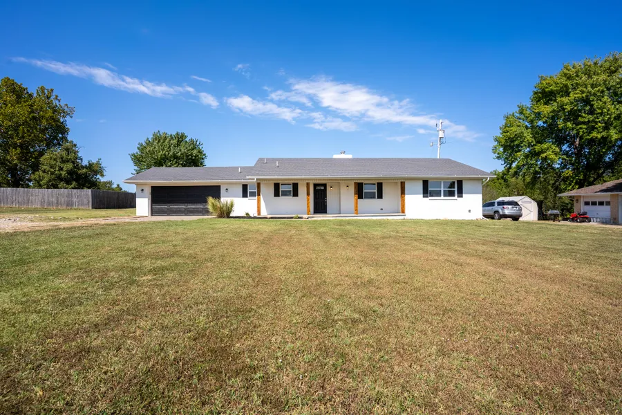 Lovely home back on the market at no fault of the seller and NOT due to home inspections! The best of both worlds! Enjoy the beauty of the country on paved Hwy 59, only 2 miles from town on an acre of flat land w/country views. Totally remodeled from paint, to lifetime flooring, to granite countertops, light fixtures, faucets, etc. Not to forget the remodeled bathrooms-wow! Lovely open floor plan. Wood-burning fireplace, the kitchen is dreamy. New stove, new dishwasher, cabinets are really pretty, under kitchen cabinet lighting. large laundry room with a 50 gallon new water heater and space for a freezer. New interior doors, new windows, new door for the attached garage, new new new & move in READY!