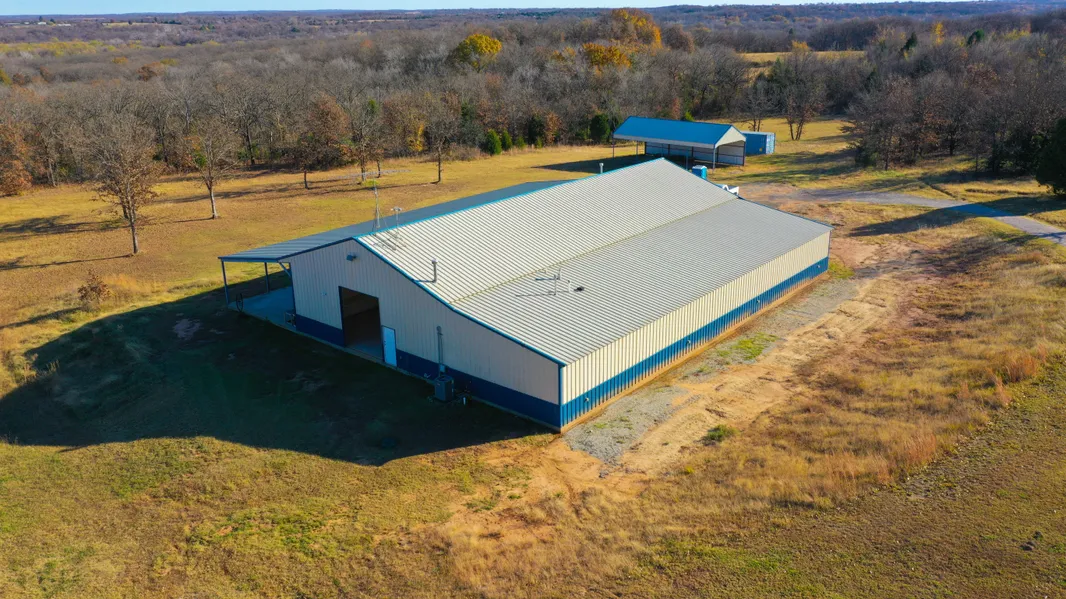 One of a kind property located in Seminole County OK. Partially cleared 40 acres featuring 3BR/1BA home AND 6500 SQFT SHOP WITH 2500 SQFT COVERED STORAGE ATTACHED. This property is an absolute dream! Middle section of the shop has 4000 sqft of 14 foot tall ceilings, gas heaters, 3 overhead doors, washer dryer hookup, work bench and storage, industrial shelving and plenty of room for any endeavor you can imagine! Additional 2500 sqft in the shop has CH&A, full kitchen, office and full bath plus psychedelic vibes with custom murals/flooring that activate with the already installed black lights! Shop as completed with impeccable construction, welded steel frame, completely insulated with additional support to ensure insulation stays in place, all electrical is ran through conduit, currently on rural water but prepped and ready to be converted to well water if you desired! House and shop have separate septic systems and 3 phase electric runs down the county road if you need to upgrade!