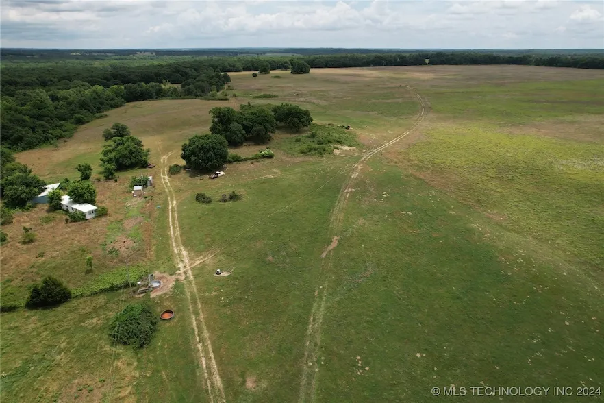 Attention, Land Enthusiasts! Discover 308 acres (more or less) near the North Canadian River! This property is a blend of clear areas and woods, featuring meadows perfect for grazing or hay production yielding approximately 53 round bales from two pastures last year. The land is routinely grazed and is cross-fenced into roughly 80-acre sections. Wildlife is abundant, with plenty of deer and turkeys. Whether you envision building a home, farming, raising cattle, hunting, or creating a recreational retreat, this property is ideal. With over 2,600 feet of quality gravel road frontage, the land boasts an open field at the front, woods at the rear, and three scenic ponds. The fencing is in good condition. Utilities, including septic, water, and electricity, are already in place, and an older mobile home is included