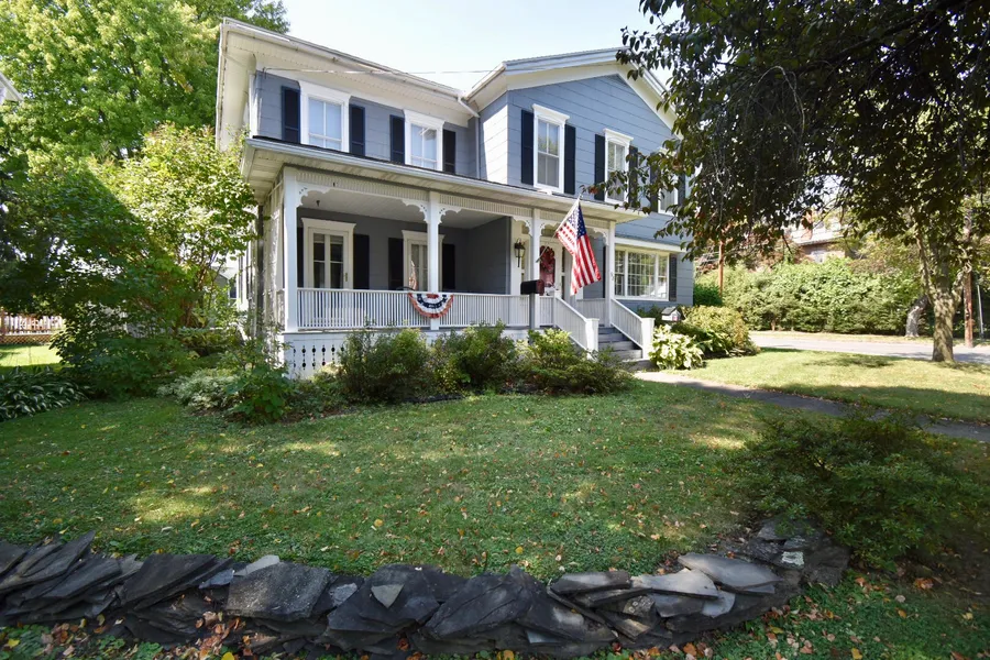 Well maintained circa 1866 Colonial with detached two car garage, large main owners unit & a 1 bed/1 bath apartment with private entrance that could also be used as in-law space! The home has had many recent updates that include exterior paint, roofs, gutters & garage doors. The main floor features a large eat-in kitchen, formal dining, 1st floor laundry, living room with gas fireplace, half bath, large den with French doors to the porch & office/library. Upstairs is a walk in closet, two large rooms connected that are used as bedrooms, and a full bath. The main unit could be used as a 4 bedroom 1.5 bath. The 1 bed/1 bath unit has a private entrance with porch, entering up to the 2nd floor. The space includes an eat-in kitchen, living room & large bedroom plus a full bath with tub/shower. Central air throughout, blacktop driveway w/ plenty of parking. Front porch was remodeled and includ...