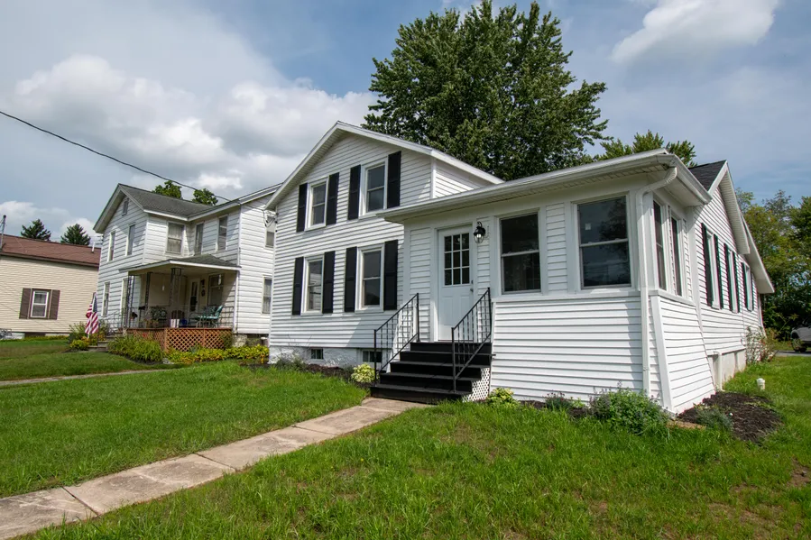 Nestled in the Village of Waterloo, this circa 1920 Cape Cod-style home has undergone many recent updates while retaining its original character! Stepping inside the bright enclosed front porch, your welcomed into the home by the spacious and open main living and dining rooms, featuring the replacement thermal windows found throughout and the refinished original hardwood floors. Just off the dining space is the renovated kitchen, offering plenty of space for an eat-in area or additional storage. The first full bathroom with tub/shower is just off the kitchen, as well as the 1st floor laundry room and access to the attached garage. A second back enclosed porch offers additional storage and foyer space. Moving from the main living room, the main level also features a spacious office/den with double closets and bedroom with on-suite full bath. Upstairs are two more bedrooms, one larger with...