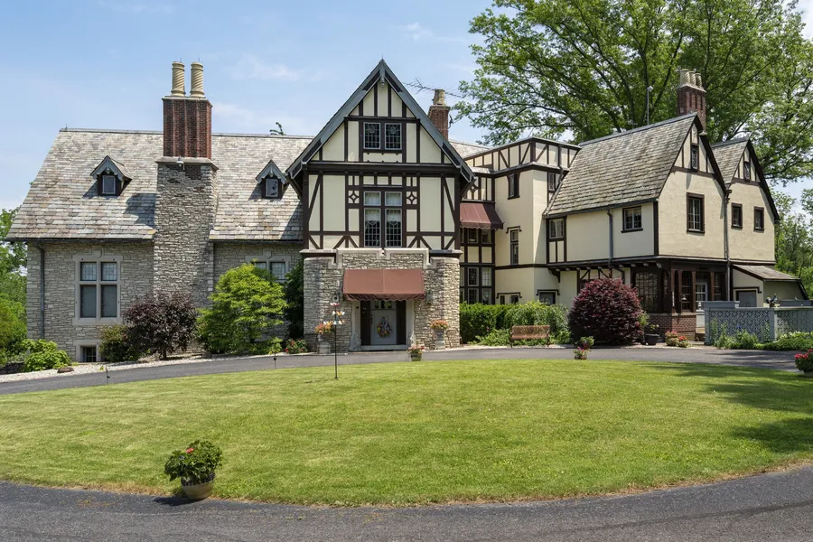 This incredible Tudor dream house was brought into reality by George Kalbfleisch in the early 1920's. Most of this home is in original condition with hand carved panels and decorative pieces from Germany, amazing doors and hand carved reliefs from a French chateau, bronze and Tiffany chandeliers, original tile and wood floors, Dresden light fixtures and so much more. This home even has the original refrigerator which has been updated and is part of the daily operations of the home. This home is not currently on the National Historic Register but does qualify. Additional rooms include a dark room, gym area, in the basement and a dance hall and play room on the third floor. The music room boasts a built in, original, Skinner organ. Believed to be one of only 13 of these built in home organs left. Huge, creek feed, four acre pond, guest house, additional building with two horse stalls all s...