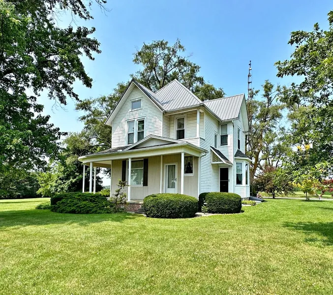 Welcome to this enchanting two-story farmhouse, meticulously maintained and steeped in history, offering a serene escape on 3.55 picturesque acres. Nestled among lush, mature trees, this property exudes the warmth and character of a bygone era while boasting modern amenities and upgrades.Step inside and be transported to a time when craftsmanship was paramount. The interior features ornate woodwork, pocket doors, and large windows that bathe the rooms in natural light.The heart of the home is undoubtedly the kitchen! Adorned with Amish-made cabinets, the kitchen blends functionality with timeless beauty making it a delightful space to prepare meals and create memories with loved ones. The primary bedroom stands out with its spaciousness and a coveted walk-in closet. The two additional bedrooms offer ample space and charm. Two full baths & main floor laundryprovide ease of living & convenience.Two well-maintained outbuildings offer additional storage & endless possibilities.