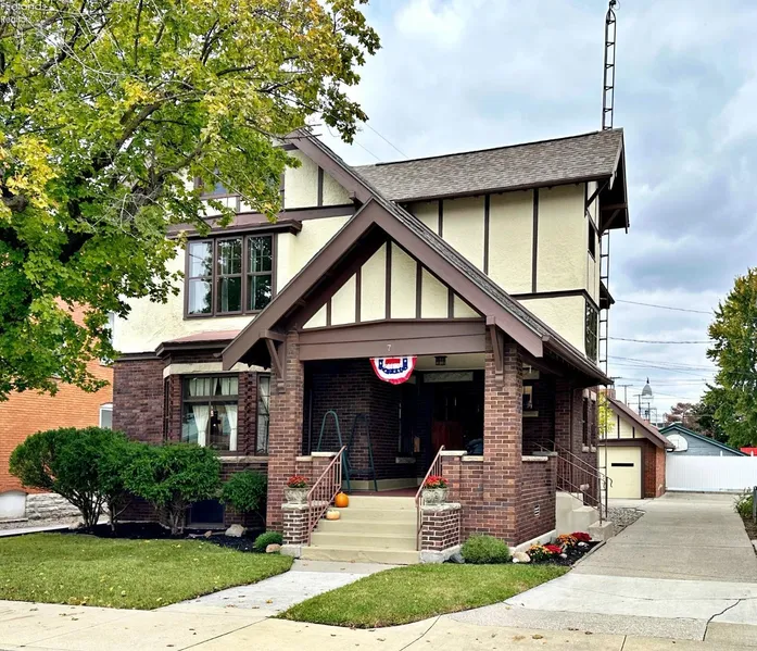 Discover the allure of this enchanting Swiss Tudor home with 3 beds, 1.5 baths, and a prime location near vibrant downtown Tiffin. The timeless architectural charm and modern comforts harmonize perfectly in this residence. Gleaming oak hardwood floors, French doors, gorgeous woodwork, and moldings throughout. A spacious living area with fireplace sets the tone for cozy gatherings. The dining room exudes elegance. The chef's kitchen is complete with modern appliances, first-floor laundry is convenient and washer/dryer remain. Upstairs, three large bedrooms offer versatility and comfort and the newly remodeled full bath is timeless. Full basement, one-car garage, roof age 2014. Your urban oasis awaits!