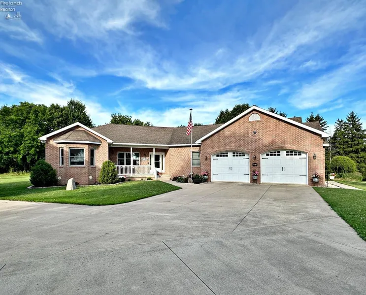 Discover the epitome of quality craftsmanship in this exceptional brick ranch home nestled on 1.7 acres, just at the edge of town.Upon entering, you are greeted by an inviting open floor plan &living room featuring a vaulted ceiling & french doors that open to a covered patio.The heart of the home features a generously sized kitchen with an abundance of storage, granite counters & 9' ceilings accentuated by natural light and a sense of openness.The expansive master suite will surely impress, offering 3 closets, a luxurious bathroom w/ double sinks, tiled walk-in shower, jetted tub & a private deck!Practical amenities include a main floor laundry & for added living space, the partially finished basement includes an egress window and plenty of additional space customizable to fit your needs.A spacious 32x48 building w/ 12' overhead doors is perfect for hobbies or storage.This property comb...