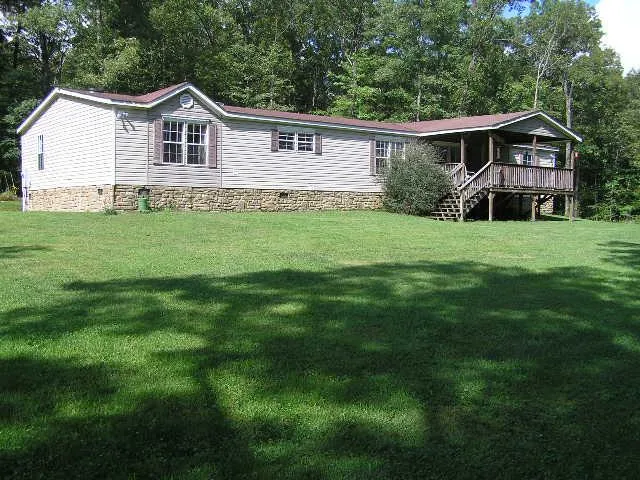 This is app 2356 Sq Ft doublewide on 6.57 wooded acres at the end of the road. Coverd porch, deck, outbuilding, central heat and air, garden tub and two baths with showers. fireplace in the living room. Shady back yard and a gate at the start of the lane.