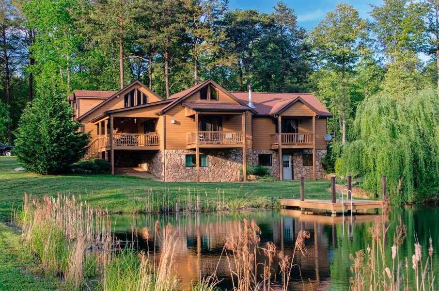 Outstanding custom home boasts vaulted ceilings, three fireplaces, and plenty of outdoor living space sits on 23 acres in peaceful Dunlap, TN. This western cedar and stone home located on breathtaking property with rolling to level topography, wooded and private surroundings plus lush green pastures and multiple ponds. Vaulted pine wood ceilings throughout the main level! Home is built with a great flow for easy entertaining and features and extra large dining room with fireplace and built-in television placement. The kitchen features Cambria solid surface granite/composite resin counters that are virtually stain proof, plus custom hickory kitchen cabinetry with tons of storage space. A unique spiral staircase leads to a charming loft area with room for additional sleeping quarters, office, and storage space. The spacious great room features a beautiful stone gas log fireplace and two se...