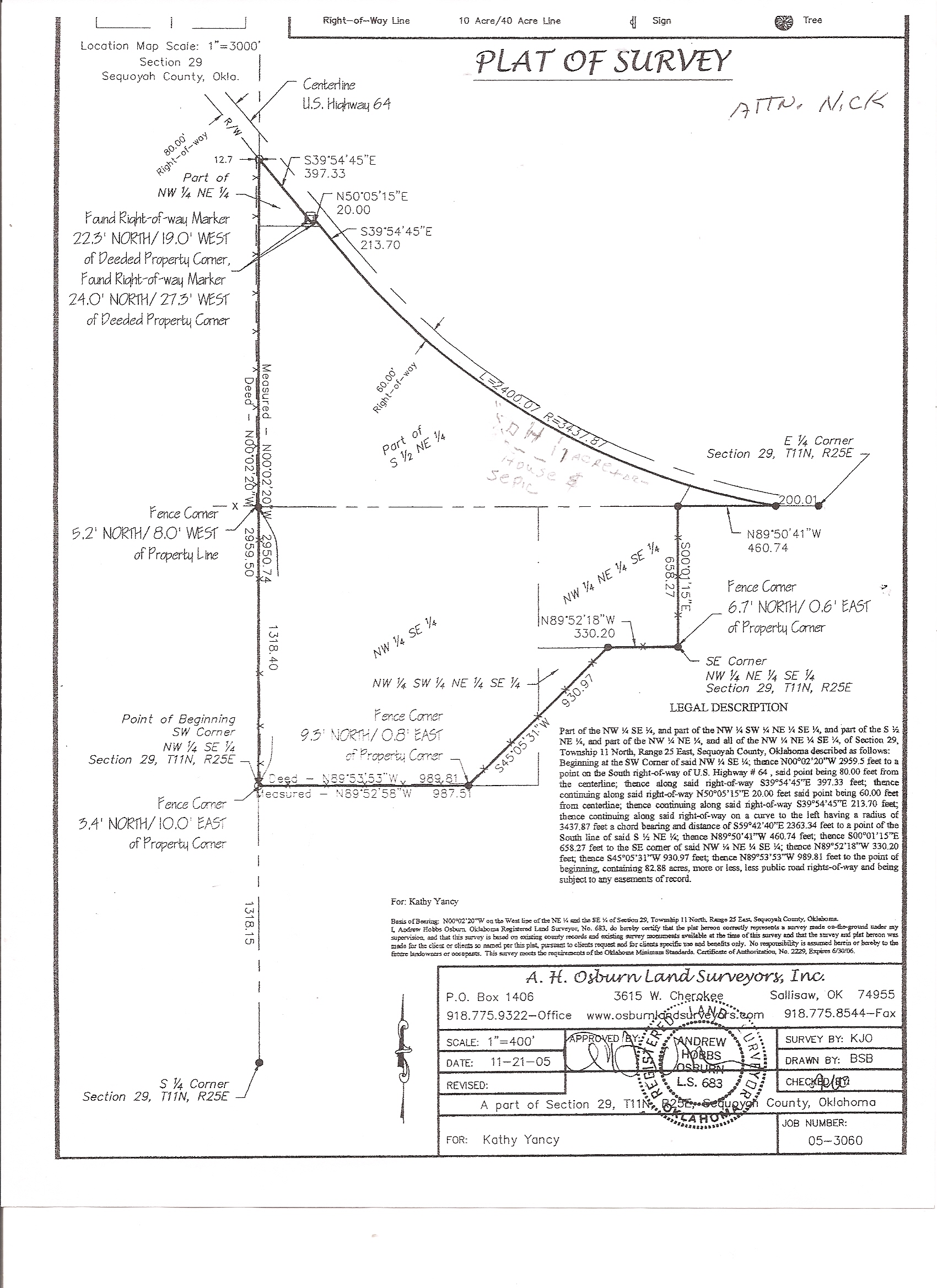 Research Parcel InformationFrom west going east on I-40 to Sallisaw, Ok. Take exit 311. At end of exit turn right onto Highway 64 and go about 6 miles. NO SIGN AT PROPERTY!Shown only by appointment!! Property has 3/4 mile Highway 64 frontage. Property ends before the service station.