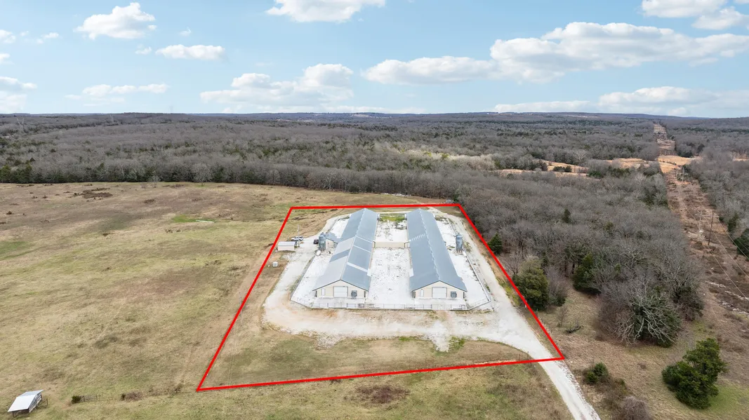 2- 40'x400' Former Aviagen pullet houses built in 2003. Upgrades were made in past 3 years and all equipment is in working order. 2 showers, 1 bathroom, holding tank, HWT, propane tank, incinerator, generator, diesel tank, 4 grain bins, water well with rural water also. Chain link fence approximately 2 years old. Chicken houses sit on a breathtaking 4.37 acres m/l and over look rolling hills. There is an easement to chicken hoses and will transfer with property. See docs for included equipment.