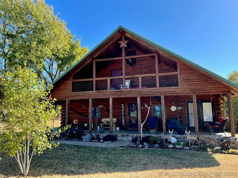 Looking for your private oasis away from it all? Look no further! 3 bed 2 bath rustic yet charming log cabin with all the necessities nestled on 10 acres. The interior boasts native stone floors and cedar cabinets, as well as custom powder-coated steel countertops. Enjoy the porches and balconies to take in the peaceful views and abundant wildlife. Includes a partially climate-controlled 30x50' shop! Must see in-person to appreciate all the details and atmosphere! (GPS Coordinates 35.58766 N, 94.80465 W)