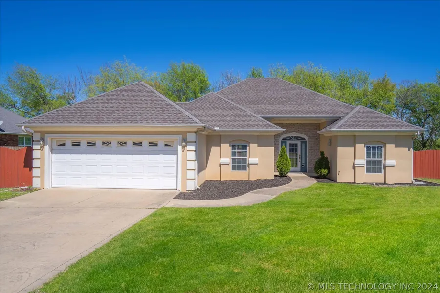 Check out this beautiful property in a prime neighborhood in Sallisaw! This home has many unique features from stucco siding to flagstone back patio area ready for your outdoor fireplace. Enjoy cooking? The kitchen has a double oven and plenty of counterspace for your cooking and entertainment needs. Combine the kitchen and formal dining for plenty of room for all your friends and family! With 14' vaulted ceilings you will feel right at home while relaxing after work. Double sinks in both the master and hall baths along with walk in closets with built ins will give everyone the room they are looking for! The large master has plenty of room for a king size bed, separate shower and tub combo, and an oversized closet will make you not want to leave your own private oasis! Pull into your stamped concrete drive and enjoy the look of the arching privacy fence surrounding the property. Come schedule your showing today! Property will be sold "as is" and the playset will convey with the property!