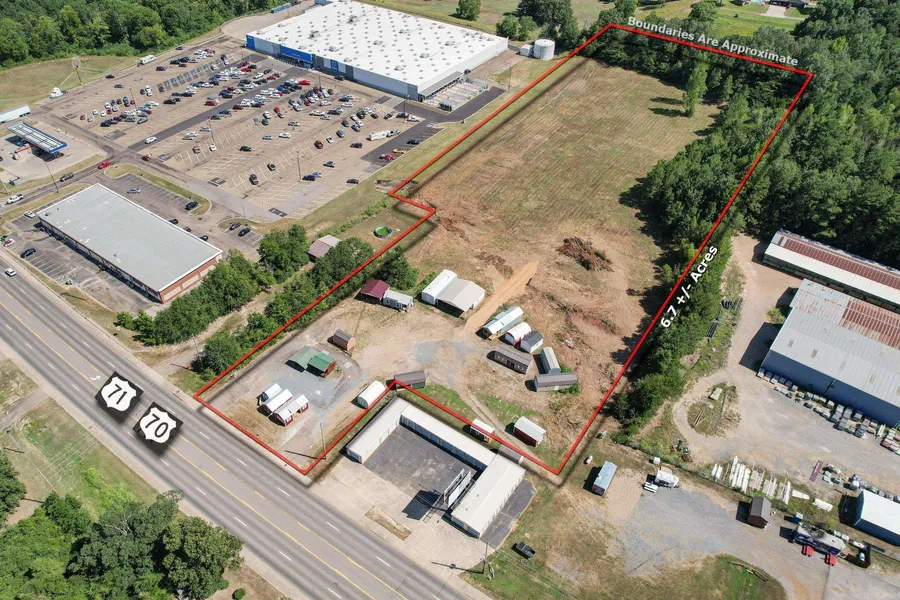 Get a look at this location! With over 300ft of highway frontage and 6.720 acres in between Walmart and Baileys Discount Buildings Supplies, the possibilities are endless for this property. City water and city sewer included.