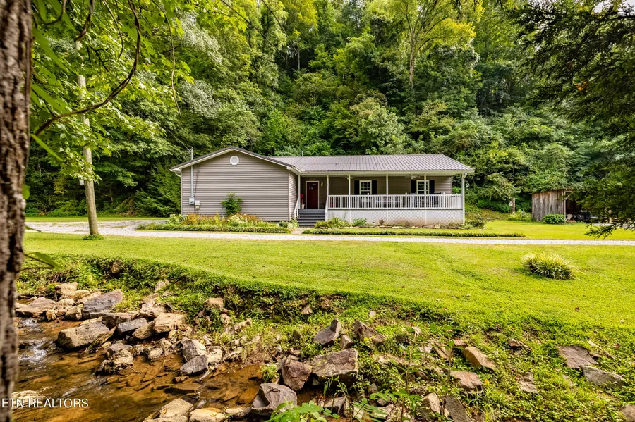 Idyllic mountain home conveniently located between Knoxville, Maryville and Seviervillle. Explore the 7+ wooded acres which rises to the ridge top behind the home or just relax on the covered porch and listen to the soothing sounds of the year-round stream. You will appreciate the open kitchen, dining and living area with the kitchen and baths receiving tasteful updates. The private deck out back is great for family cookouts and entertaining friends. Come and see this mountain retreat!