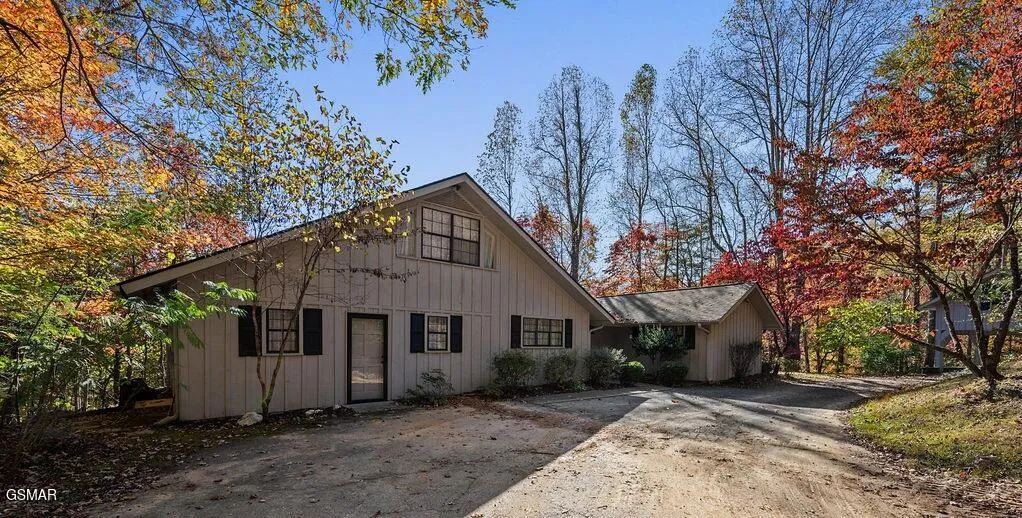 This spacious home is situated on a one-acre lot in the Arts and Crafts Community, just minutes from downtown Gatlinburg. The entrance foyer features two coat closets and opens into a great room with a double stone fireplace and hardwood floors. The renovated kitchen boasts granite countertops, stainless steel appliances, and an island. Adjacent to the great room is an expansive formal dining room with an exterior entrance and a large storage closet. Both the dining room and great room open onto a patio with wooded views, and the trees could be topped to reveal a mountain view. The laundry room and pantry are conveniently located off the kitchen. Originally a three-bedroom home, the third bedroom is currently used as a walk-in closet/dressing room but could easily be converted back. The master suite includes two full bathrooms for maximum privacy, while the second bedroom has easy access to the guest bathroom. A spacious loft with large windows serves as a home office but could also be the perfect space for a game room or additional bedroom. The property features a two-car detached garage with a partially finished room upstairs. This home offers unlimited possibilities!