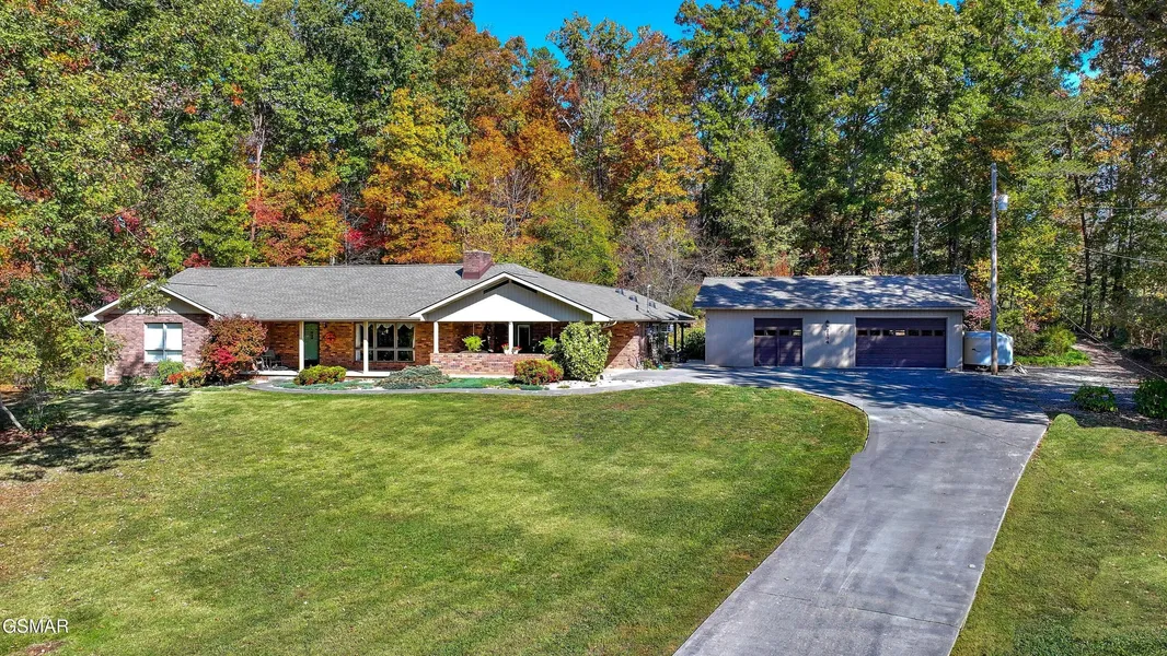 This beautiful, solid built home sits on 3.79 acres in a nice private and quiet subdivision of the New Center area. The home is surrounded with lush flower gardens, mountain views and Tennessee farm land. The sun room and back patio offer excellent space to enjoy the sunlight and the wooded nature of this property. The roof is new from 2024. The sunroom was built in 2021. The propety also has a detachted 3 car garage, a wood shop and chicken coop, and a large garden shed. The main level has beautiful hardwood laminate floors and tile throughout. The lower level has a private entrance and private driveway and can serve as a seperate apartment or a mother in law suite. This property is a gem and is a must see.